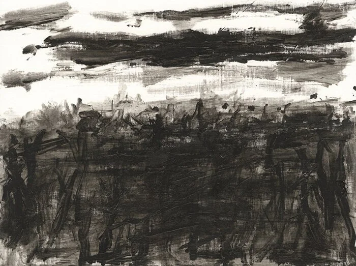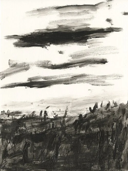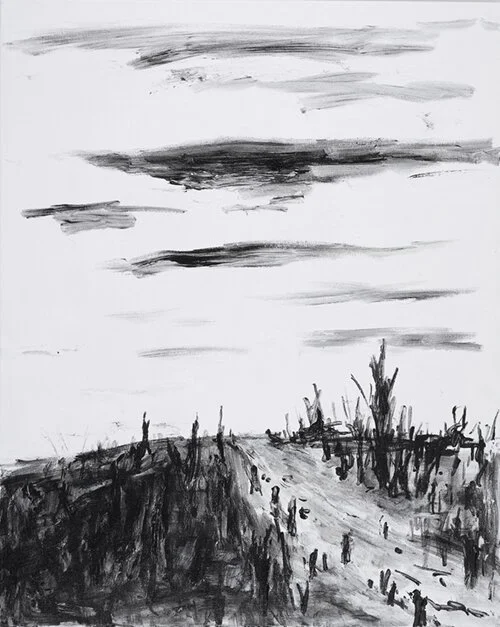 In early February 2020, Ed was suddenly inspired to do a haunting series of paintings offering an apocalyptic vision of the future. Many paintings were completed by June. A series of study paintings and sketches were completed first, and then the large paintings, the first of which is called The Meadow, displayed here. A number of other large paintings followed The Meadow, two of which are displayed here as well.