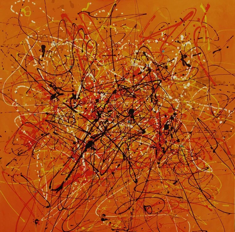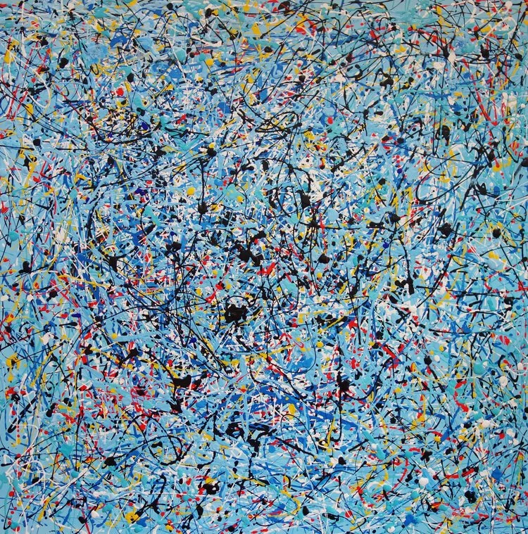 These pieces are representative of a series I created by dripping liquid acrylic paint on canvas. In Blue Horizon, I was representing a hidden structure to our reality.