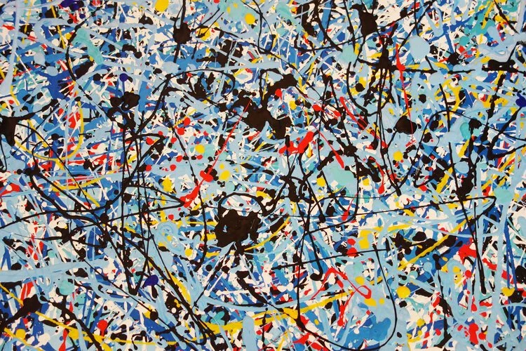 Splatting and dripping paint on the canvas goes back to the electric work of Pollack. I tried that out, and was motivated to see if the drips and splats could help me make a window to the space around us we can’t see – like wearing new glasses! It looks totally psychedelic!