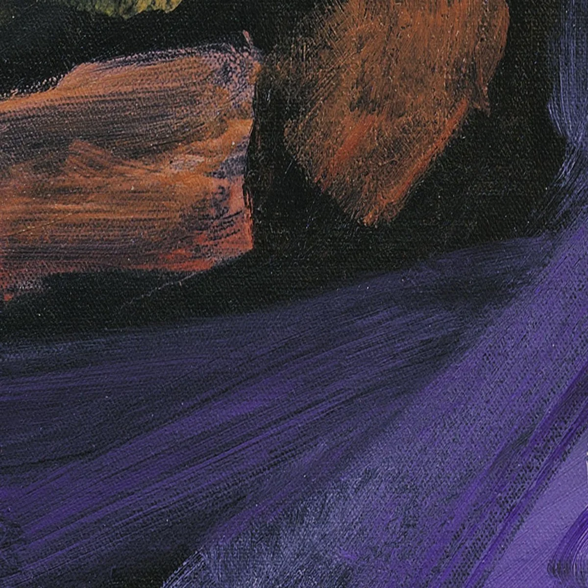 An abstract view of the night sky through the trees, this painting bears resemblance to the James Webb Telescrope’s photo of the Tarantula Nebula in 2022.