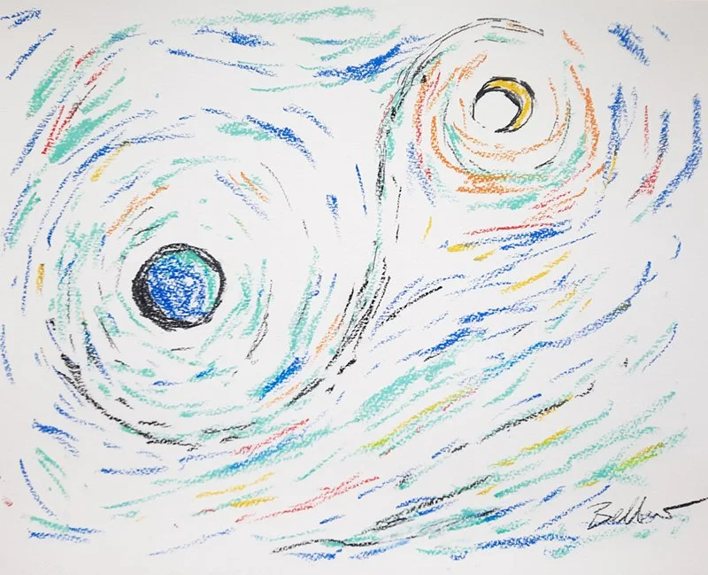 This pastel painting was done to try and find a new route to the Moon that used no fuel for lunar capture, called ballistic capture. At the time, I was working on a mission study at JPL that tasked me with a 3-month deadline to come up with what is now known as a ballistic capture transfer and a weak stability boundary. A ballistic capture transfer had never been found. The concept of Weak Stability Boundary was only theoretical and had never been applied. As an act of desperation, I drew a picture and hoped the brush strokes may reveal a ballistic capture transfer and a weak stability boundary. They surely did. The brush strokes translated themselves into numbers that worked in the NASA computer system. It was the first time a low fuel route to the Moon was ever found. This route has been used by ESA’s SMART-1 spacecraft in 2004. This was an unique historical situation of art giving rise to a scientific discovery.
