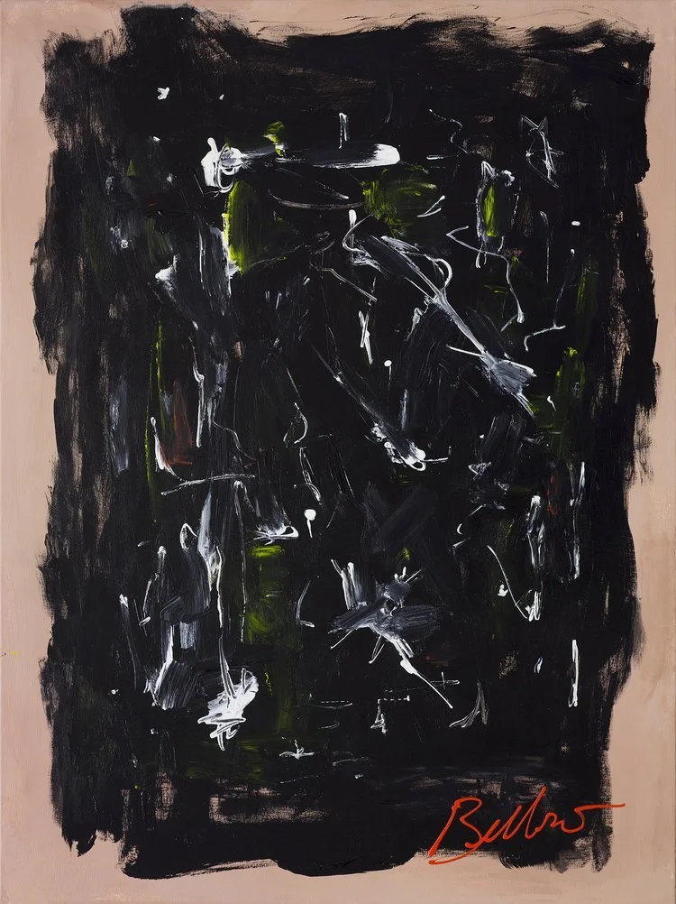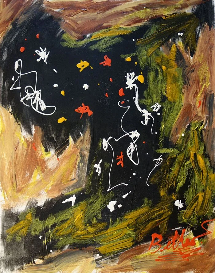 This painting is an abstract expressionist rendering of a dialogue on the structure of space and time.